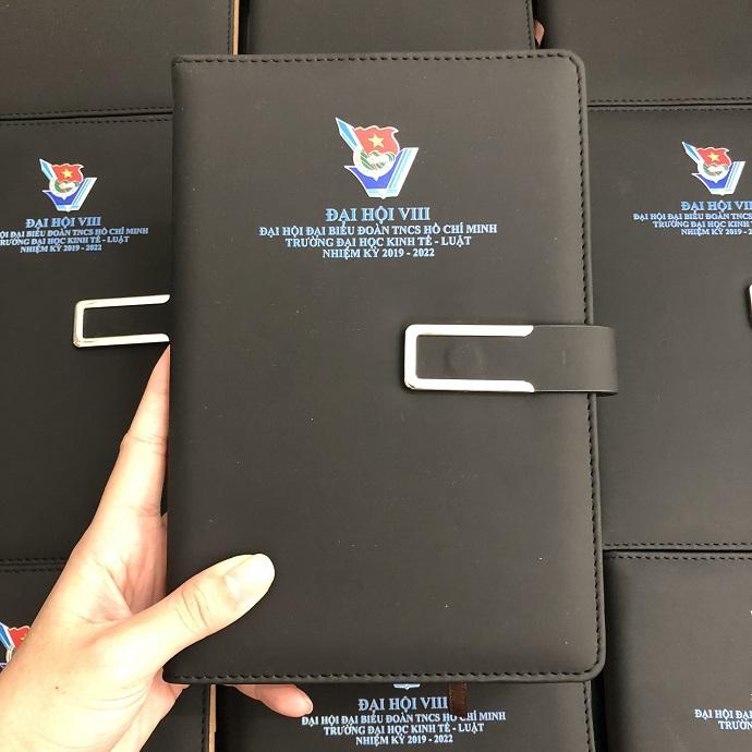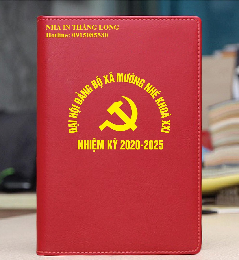 - Công nghệ: Bìa dập logo và tên đơn vị ở trước trực tiếp trên bề mặt sổ (hoặc có nhũ kim), ruột in offset nhiều màu theo yêu cầu