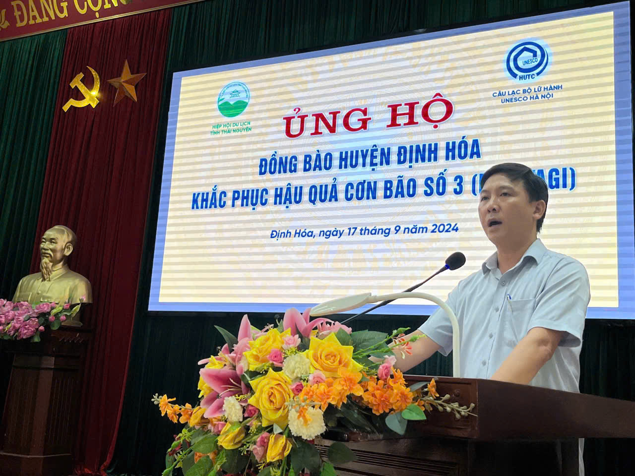 Ngày 17/09/2024, đoàn Thiện nguyện CLB Lữ hành Unesco Hà Nội lên đường đi đến tỉnh Thái Nguyên trong hành trình Cứu trợ đồng bào sau cơn bão số 3 Yagi. Thành phần đoàn gồm có: