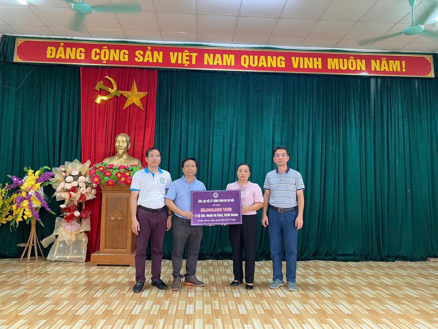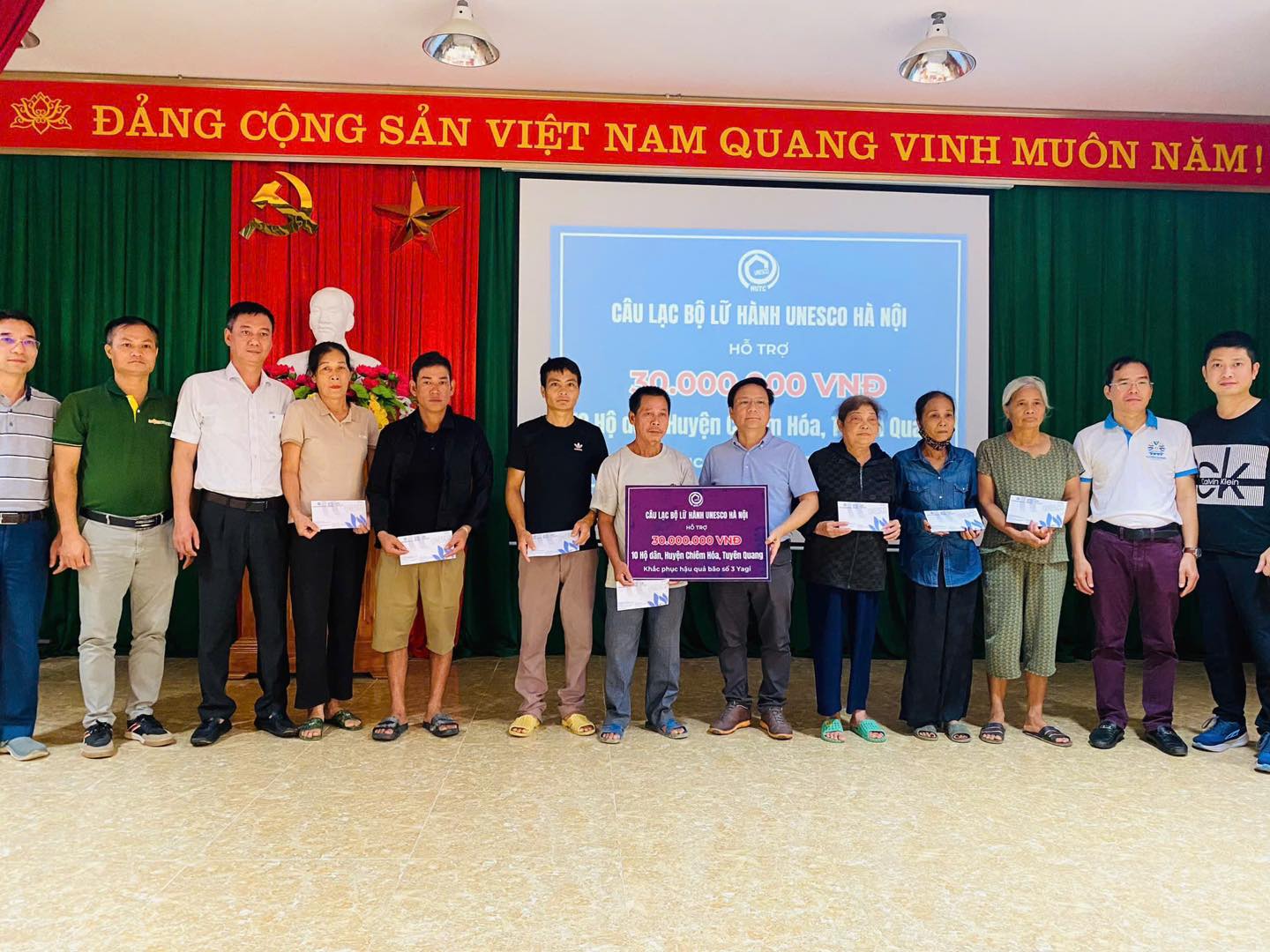 Sau khi tìm hiểu và được sự trợ giúp về thông tin của Tỉnh, CLB Lữ hành Unesco Hà Nội đã phối hợp với MTTQ VN huyện Chiêm Hoá và MTTQ VN huyện Na Hang để trao tặng đến những hộ dân nghèo, bị thiệt hại mất hết nhà cửa và tài sản do mưa lũ. Cụ thể: