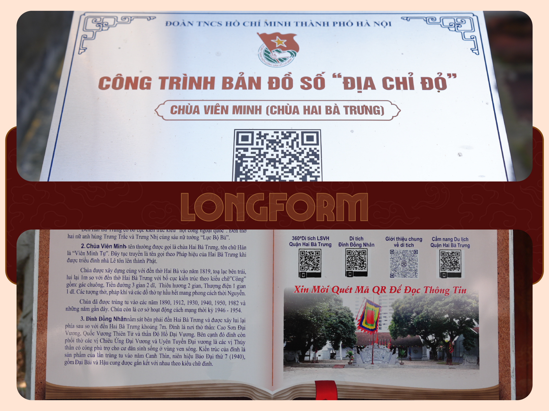 Cụm di tích kiến trúc - nghệ thuật Đền, Chùa, Đình Hai Bà Trưng ứng dụng mã QR giúp du khách dễ dàng tìm hiểu thông tin về di tích.