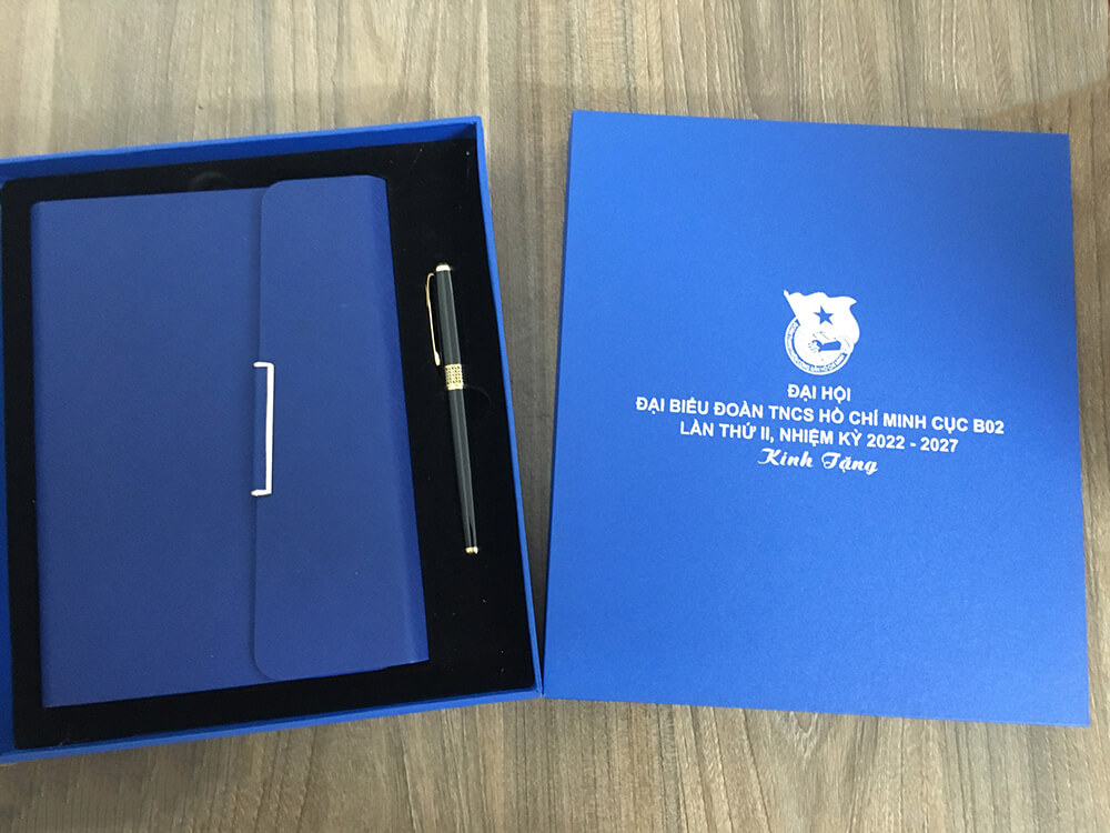 - Set bút ký và sổ tay bìa da: Quà tặng truyền thống, hữu dụng trong công việc và ghi chép tại đại hội.Có thể in logo Đoàn, Công đoàn để tăng tính nhận diện.