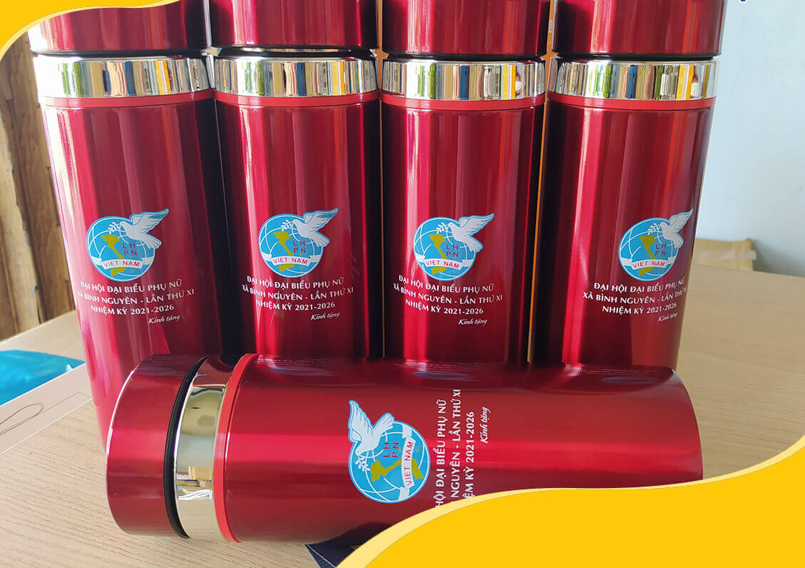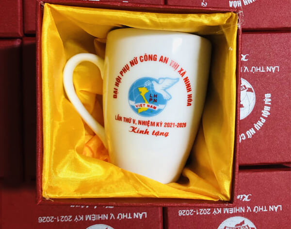 - Ly sứ, cốc thủy tinh in logo: Vừa có giá trị sử dụng, vừa lưu giữ kỷ niệm về sự kiện.