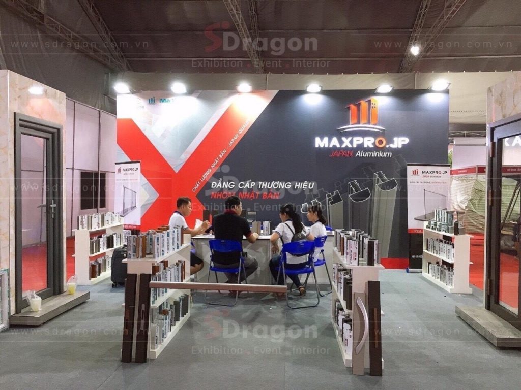 Sdragon VietnamMedia (ĐT: 0941 886 161) thiết kế thi công gian hàng hội chợ triển lãm đẹp (Giá cực tốt) với đa chất liệu như bạt, gỗ, mica, fomex… cùng các vật liệu trang trí phù hợp với đặc thù sản phẩm ngành hàng của doanh nghiệp. Mỗi gian hàng Sdragon VietnamMedia mang đến đều có những đặc trưng thiết kế riêng, khi thiết kế gian hàng hội chợ thì doanh nghiệp cần bộc lộ được đặc tính ngành hàng để khách hàng thông qua đó nhận ra được thông điệp của sản phẩm từ doanh nghiệp. Chẳng hạn đối với gian hàng trưng bày nhôm kính cần thể hiện sự mạnh mẽ, bền bỉ, chắc chắn. Hay với sản phẩm nội thất cần tinh tế, sang trọng,…