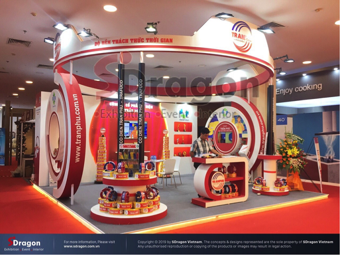 Sdragon VietnamMedia (ĐT: 0941 886 161) thiết kế thi công gian hàng hội chợ triển lãm đẹp (Giá cực tốt) với đa chất liệu như bạt, gỗ, mica, fomex… cùng các vật liệu trang trí phù hợp với đặc thù sản phẩm ngành hàng của doanh nghiệp. Mỗi gian hàng đều có những đặc trưng thiết kế riêng, khi thiết kế gian hàng hội chợ thì doanh nghiệp cần bộc lộ được đặc tính ngành hàng để khách hàng thông qua đó nhận ra được thông điệp của sản phẩm từ doanh nghiệp. Chẳng hạn đối với gian hàng trưng bày nhôm kính cần thể hiện sự mạnh mẽ, bền bỉ, chắc chắn. Hay với sản phẩm nội thất cần tinh tế, sang trọng,…