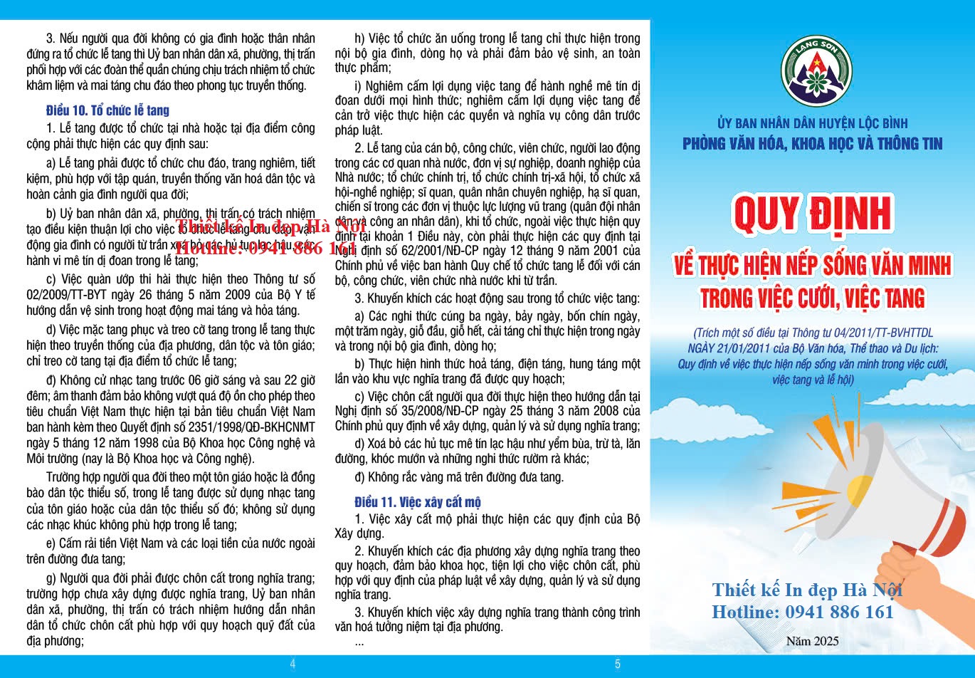Nếu quý cơ quan, đơn vị đang có nhu cầu thiết kế tờ rơi tuyên truyền thực hiện nếp sống văn hóa, văn minh trong việc cưới, việc tang và lễ hội, hãy liên hệ Thiết kế In đẹp Hà Nội để được tư vấn nhanh chóng và chuyên nghiệp.