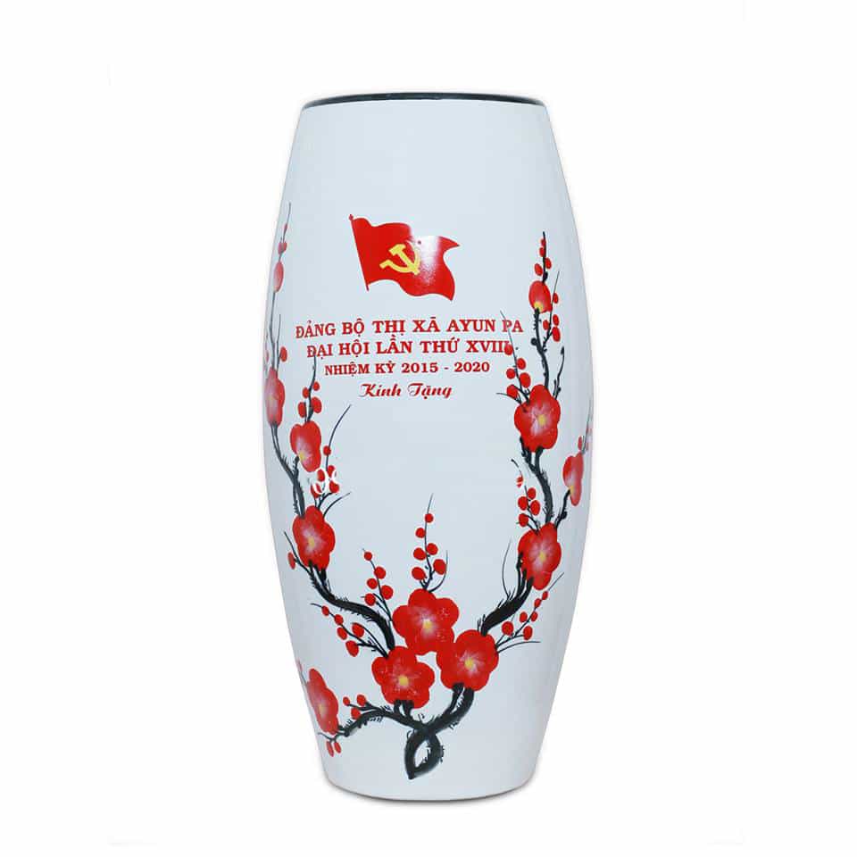 Bình hoa vốn là món quà mang tính trang trí cao cấp được nhiều người ưa chuộng. Với những hoa văn tinh xảo, họa tiết đặc sắc, chắc chắn sẽ là quà tặng đại hội độc đáo mà bạn không thể bỏ lỡ. Về chất lượng sản phẩm, những lớp men tráng, đất sét nền… được gia công tỉ mỉ trên bình hoa gốm sứ cũng khiến cho món quà này trở nên cao cấp và bền bỉ hơn. Điều này giúp người nhận cảm nhận được sự trân trọng của nhà tổ chức đại hội dành cho họ. Hơn thế, tặng bình hoa gốm sứ đặt trong nhà sẽ là món đồ người nhận rất dễ nhìn thấy. Chỉ cần đi ra đi vào đều sẽ chạm mắt với bình hoa này và khi đó, họ sẽ nhớ tới người tặng nhiều hơn. Điều này cũng góp phần tăng cường mối quan hệ hữu nghị của hai bên.