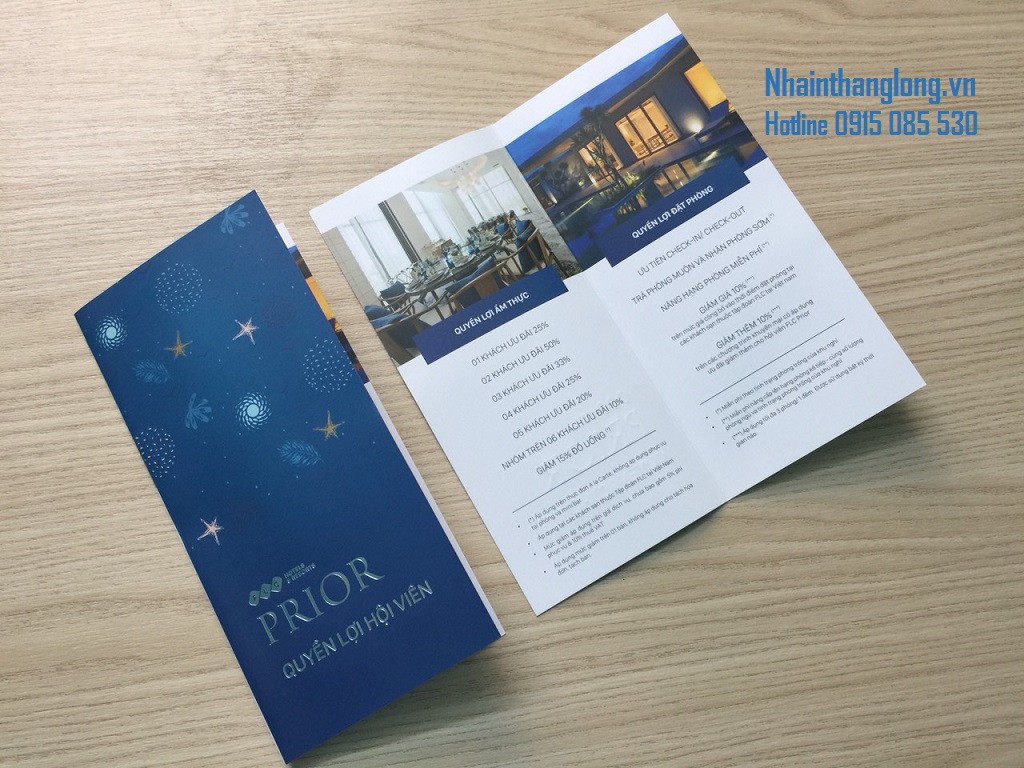Nội dung Tờ rơi Tập gấp Brochure khách sạn: Hình ảnh khách sạn, nội dung thông tin đầy đủ về dịch vụ nhà hàng, khu vui chơi, phòng gym, bể bơi, quán bar… mức giá để khách hàng có thể nắm bắt, từ đó quyết định sử dụng dịch vụ hay không. Ngoài ra, các thông tin phòng nghỉ, tiện nghi cần được làm chi tiết về không gian, giá thành… để khách hàng nắm bắt khái quát nhất.